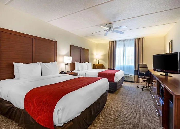 The Comfort Inn Kissimmee-Lake Buena Vista South features a heated outdoor pool and is located just 6 km from the Walt Disney World Resort. Each smoke-free guest room boasts modern amenities such as flat-screen televisions and coffee makers, while some include kitchenettes for added convenience. Guests can enjoy complimentary hot breakfast and free wireless high-speed internet access. With Universal Orlando Resort only 18 km away, it's an ideal choice for families visiting Central Florida attractions. The hotel also offers easy access to local dining options and attractions.