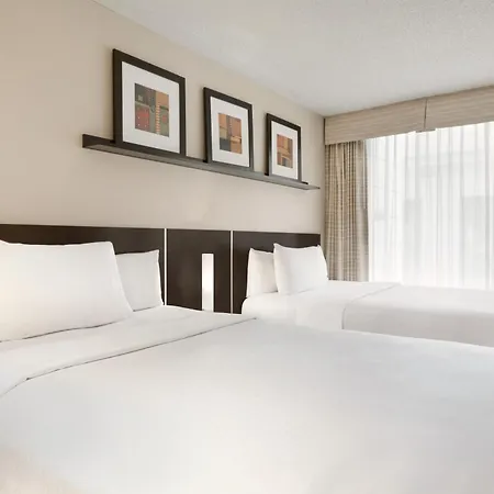 Embassy Suites By Hilton - Montreal offers comfortable accommodations with convenient access to Old Montreal's vibrant nightlife and cultural hotspots. This hotel features spacious suites equipped with microwaves and refrigerators, along with free cooked-to-order breakfasts. Guests can enjoy evening receptions featuring complimentary drinks and snacks in the relaxed atmosphere. It is an excellent choice for both family vacations and business trips, situated near shops and dining options.