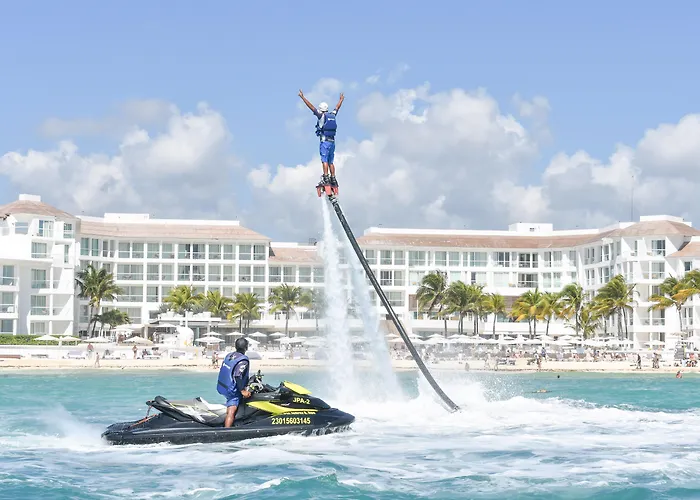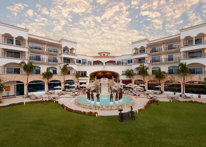 Playacar Palace presents a high-end experience with elegant guestrooms and a range of luxury amenities located in Playa del Carmen's Hotel Zone. The resort's outdoor pool features a swim-up bar for convenient refreshment, while guests can explore nearby archaeological sites with guided tours available. Rooms come equipped with upscale bath amenities and 24-hour room service. The hotel also offers entertainment options in the evening. Its proximity to local attractions enhances the overall experience.